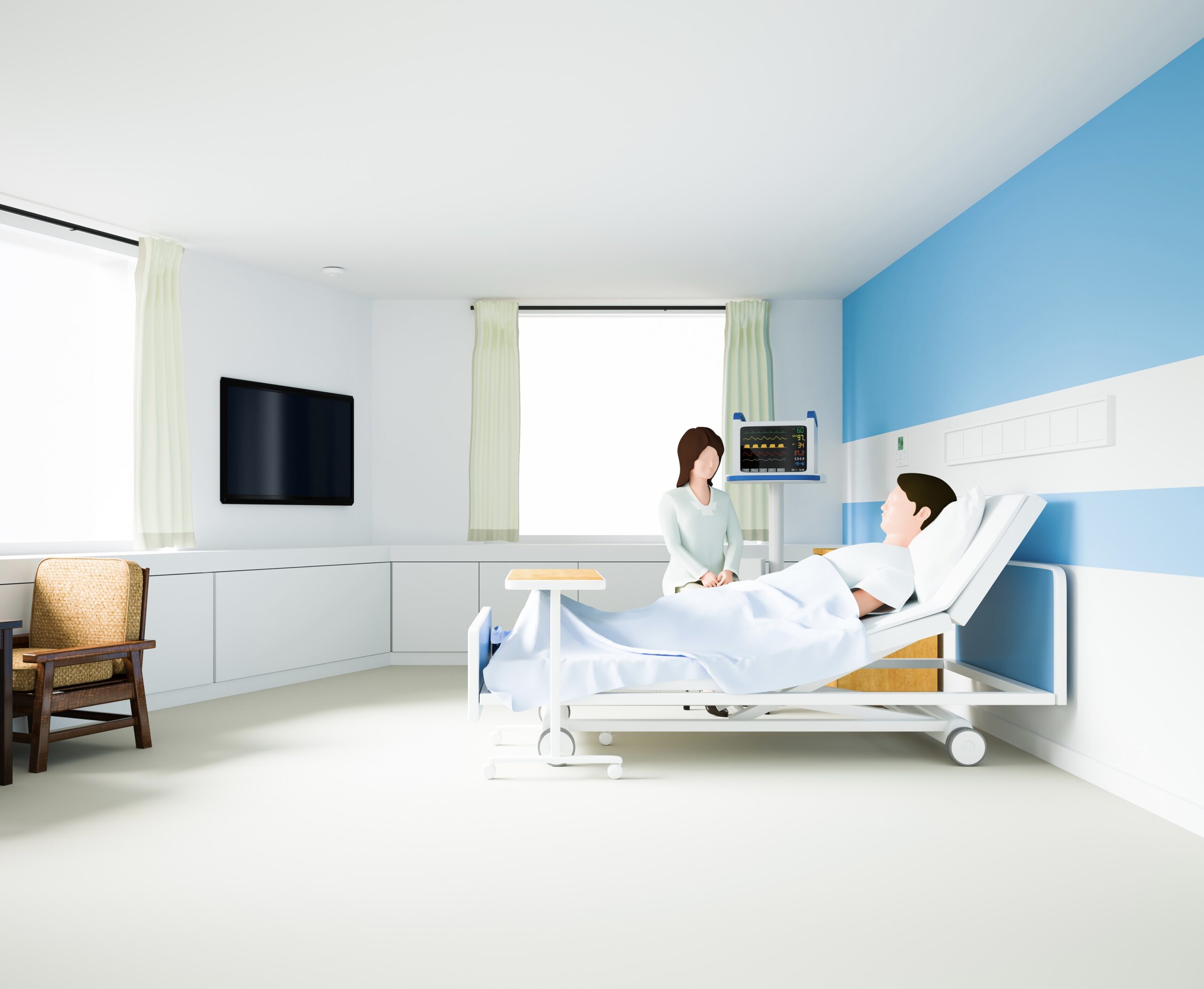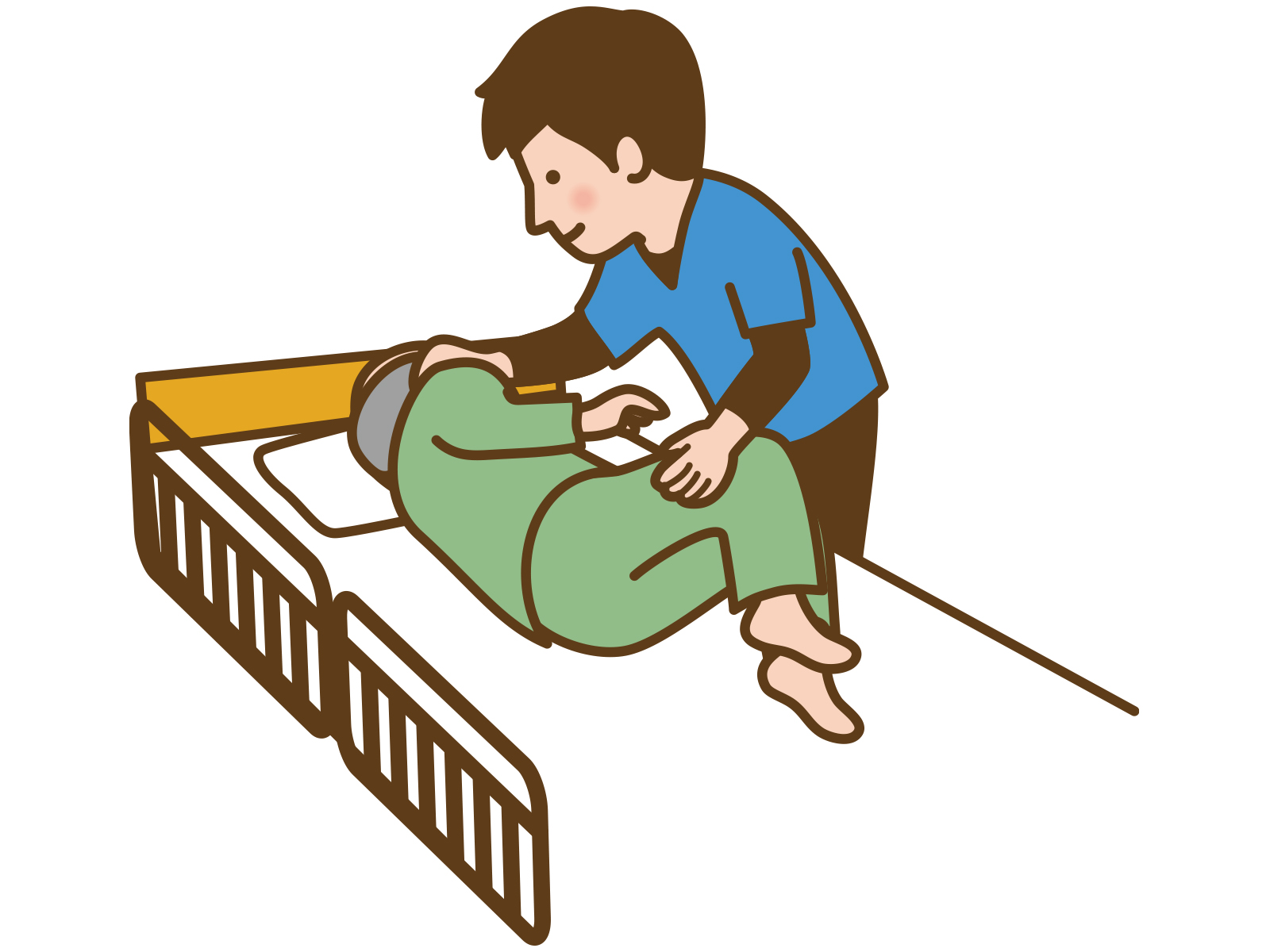 寝たきりの方にもベッド上で関節拘縮の予防や起き上がりの練習を行います